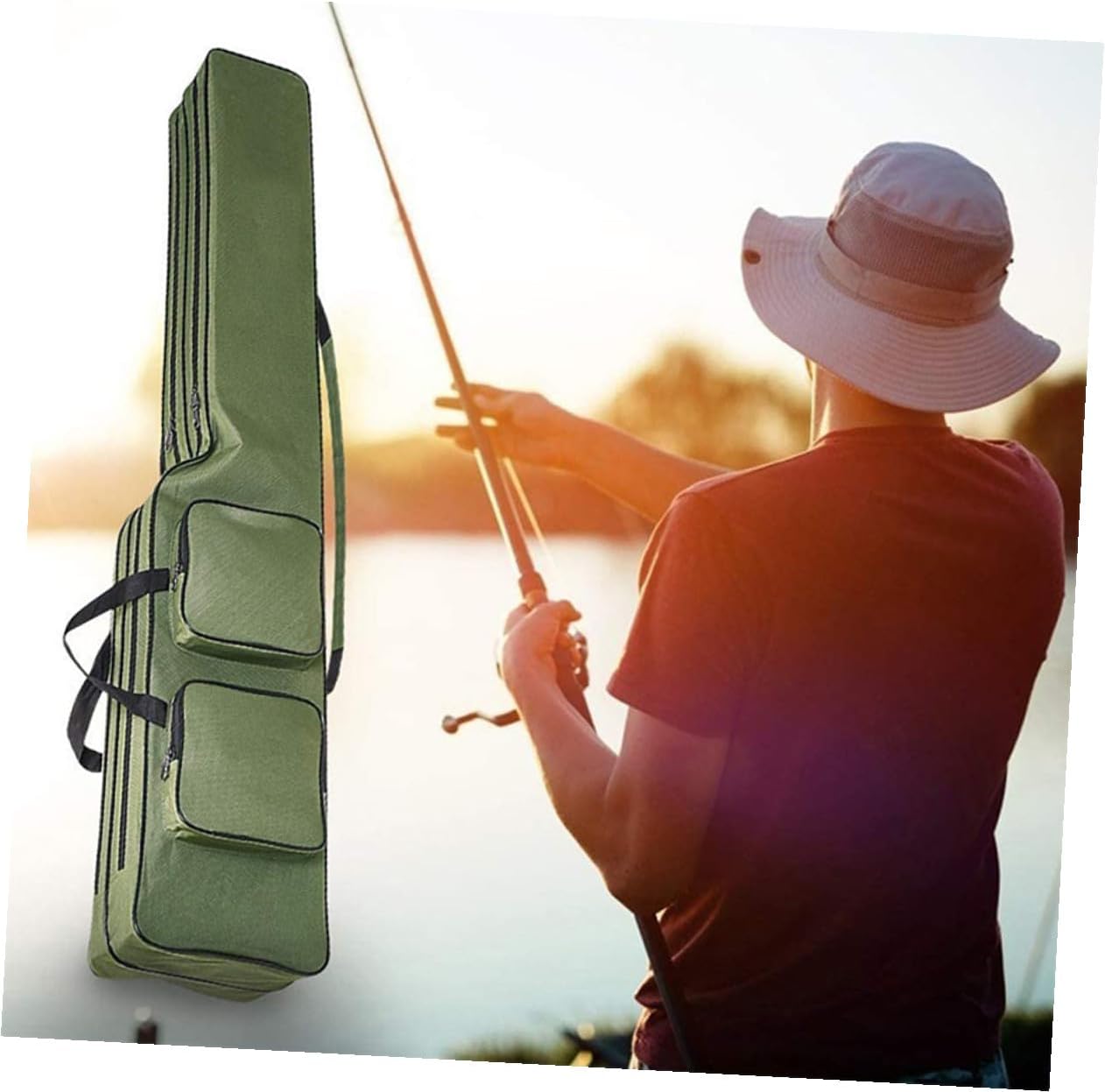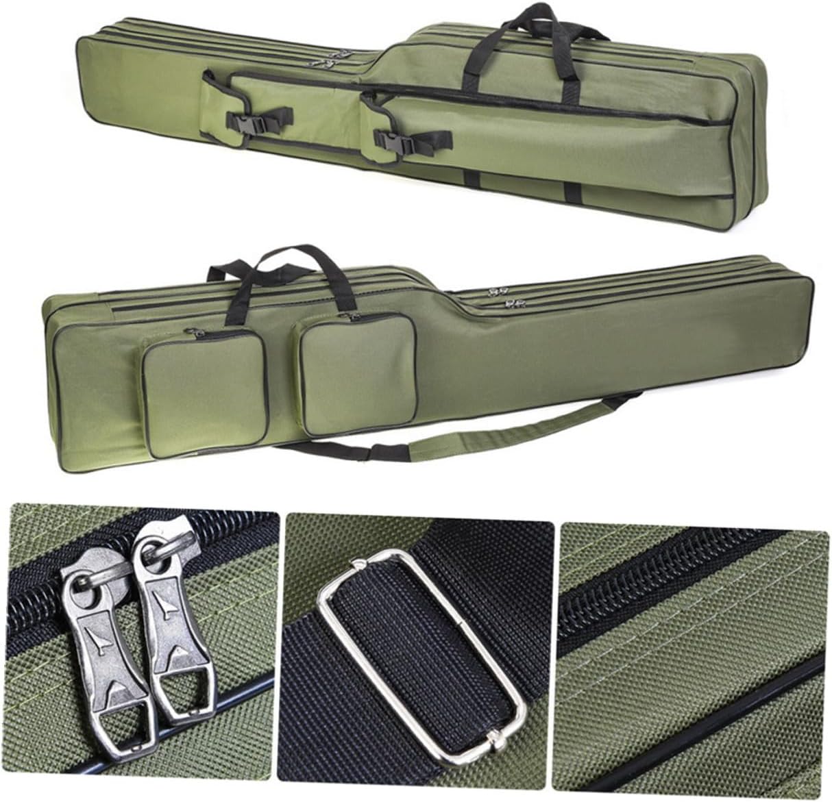 Package List 1 Bag Features -Material:Oxford Cloth -Size:130.00X24.00X14.00cm/51.09X9.43X5.50in -Color:Olive Green -Product Info:Fishing rod bag - Fishing bag protects the rod or fishing umbrella from any accidental damage. Ultra tear-resistant, abrasion-resistant, sturdy and water fabric for great durability versatile fishing bag. - With strap and adjustable shoulder strap, can be used as hand or shoulder back. You can choose different use modes according to your needs fishing rod bag pole holder. - Made of materials, durable and for a long time use. Tear resistant, wear resistant, very durable. - This fishing bag includes 2 main compartments and 4 side bags to provide large capacity for your tackle and keep it neat and organized fishing pouch. - Equipped with safety buckle and zipper to prevent your items from falling. Wide opening and double zipper design and easy to use your fishing gear fishing rods bag.Goods Descriptionportable fishing gear bag Easy and convenient to use, the folding storage bag offers plenty of space for tools storage, this storage bag can be used in many occasions, such as fishing, camping, and so on.fishing pole storage Made of for long time and durable to use