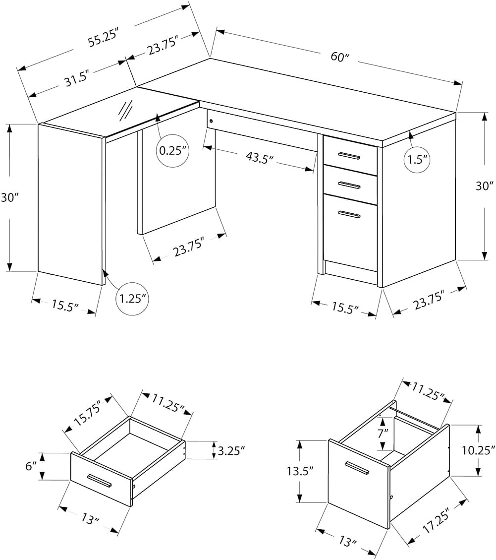 | Model Name | Monarch Specialties I 7138 Computer Desk, Home Office, Corner, Left, Right Set-up, Storage Drawers, L Shape, Work, Laptop, Laminate, Tempered Glass, Brown |